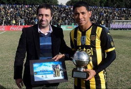 El delantero de Peñarol recibió el premio antes del partido con Defensor