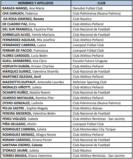 El entrenador Daniel Pérez convocó 29 futbolistas para este nuevo microciclo que se desarrollará del 22 al 24 de noviembre en el estadio Charrúa.