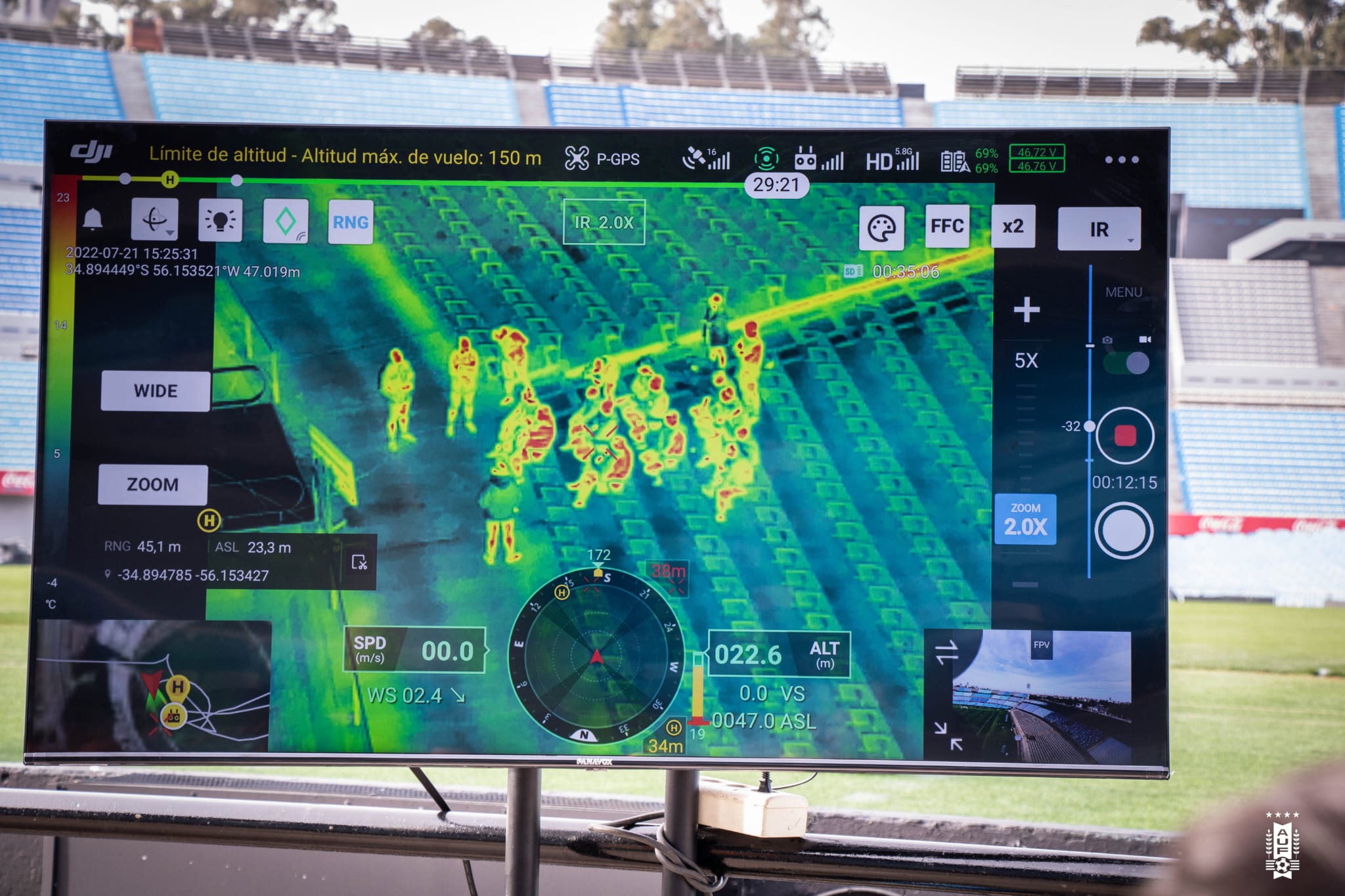 En caso de incidentes o disturbios, en comunicación con el cuarto árbitro, y por medio del oficial de seguridad de AUF, se puede hacer ingresar el drone.