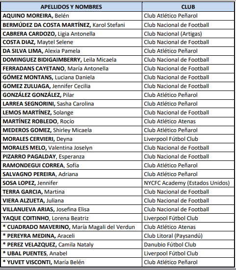 El entrenador Daniel Pérez dio a conocer las 22 futbolistas que integraran el plantel que viajará a disputar el Sudamericano Sub-20 en Guayaquil