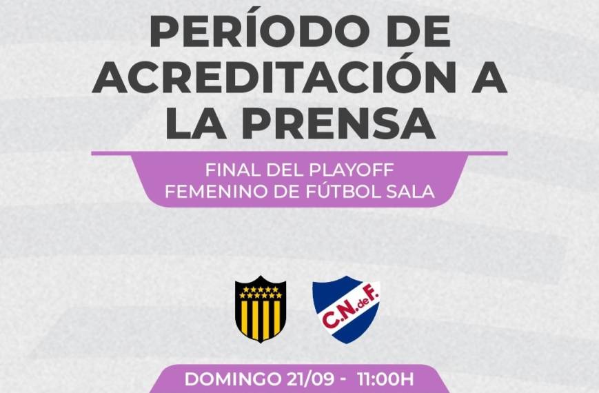 La Asociación Uruguaya de Fútbol informa sobre el proceso de acreditaciones, para periodistas y reporteros gráficos, para la final del playoff femenino mayor de Fútbol Sala a disputarse el domingo 21 de setiembre en el Polideportivo Las Piedras